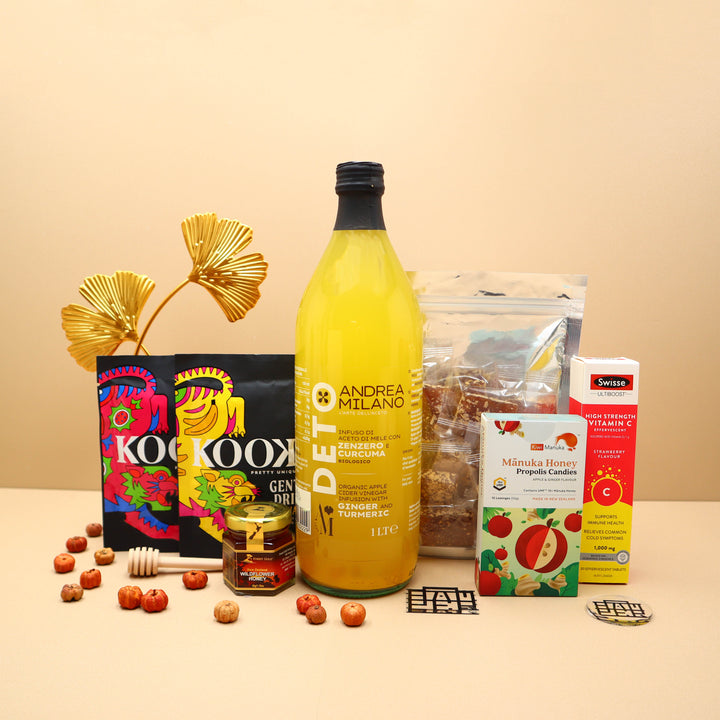 這款禮籃提供了促進健康的補充劑、舒緩的零食和美味的零食,可滿足各個方面的健康需求。這是一個全面的解決方案,旨在支持從免疫系統維護到緩解壓力的整體健康。此套裝提供多種營養選擇,以滿足不同的健康需求。