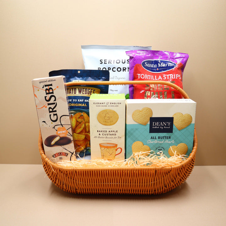這款誘人的禮籃包含各種令人愉悅的小吃和零食,融合了鹹味和甜味,非常適合在聚會期間分享或作為個人享受。這些物品創造了一個均衡的禮籃,慶祝甜味和鹹味的令人愉悅的對比,使其成為任何場合或特殊款待的完美選擇。